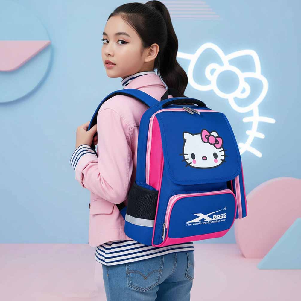 Balo tiểu học Xbags Pretty Xb 3018 sở hữu tone mày xanh hồng chủ đạo, cùng họa tiết Hello Kitty dễ thương, xinh xắn là phụ kiện thời trang giúp bé luôn vui vẻ, hào hứng khi đến trường.