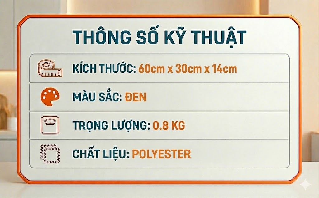 + Vải phụ: lót 210D, PU