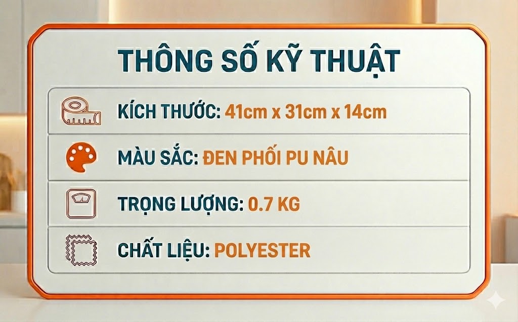+ Vải phụ: lót 210D, PU