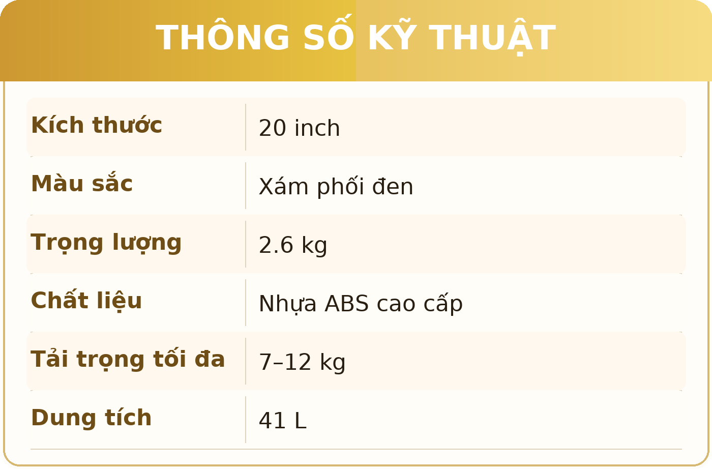 - Tải trọng tối đa của vali là 7-12 kg
