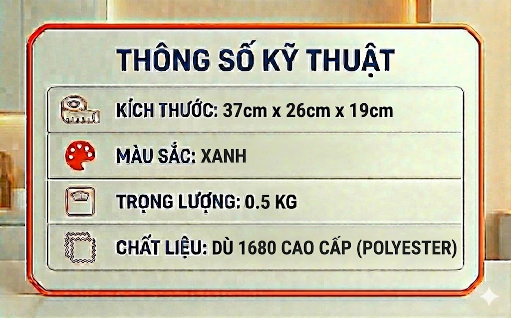 + Vải chính: Dù 1680 cao cấp (Polyester)