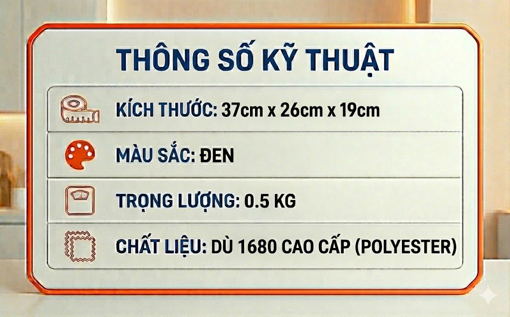 + Vải chính: Dù 1680 cao cấp